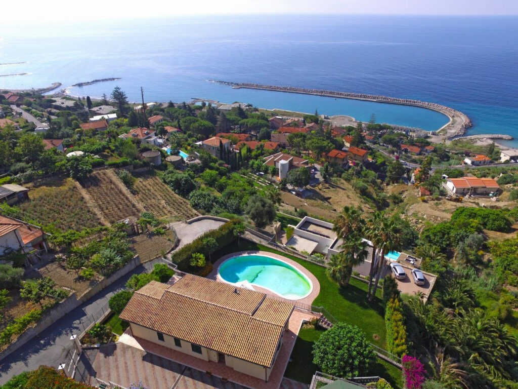 Mimořádná vila s výhledem na moře na prodej v Ospedaletti. Nádherný rodinný dům s nádherným výhledem na moře, který se nachází v prestižní rezidenční čtvrti a zaujímá vyvýšenou polohu, se nachází v honosném areálu ve stále oblíbenějším Ospedaletti pro své mírné klima a pohodový životní styl. Tato nově postavená vila na prodej v Ospedaletti je obklopena zelení, klidem a fascinujícím panoramatickým výhledem na mírně klesající kopec do mnohotvárných odstínů modré oblohy. Tato vila s elegantně zařízeným ubytováním zahrnuje velkorysé obytné prostory, které přecházejí do venkovní zábavní zóny, je situována do dvou podlaží a zahrnuje čtyři ložnice, dvě koupelny, prádelnu a skladovací místnost, v přízemí.