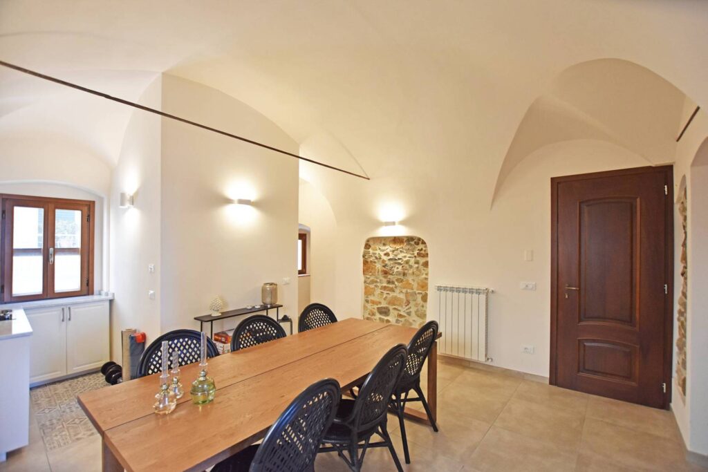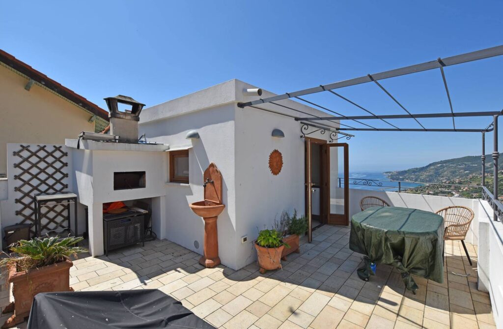 Nejvyšší patro nabízí hlavní kuchyň, která se otevírá na prostornou střešní terasu. Tento venkovní prostor je ideální pro stolování pod širým nebem, odpočinek s rodinou a přáteli a je vybaven tradiční funkční pecí na dřevo. Dům je situován v těsné blízkosti restaurací, obchodů, lékárny i supermarketu a jen pár minut od pláží San Remo a Ospedaletti. Ideální příležitost pro ty, kteří chtějí zažít jedinečnou atmosféru ligurské vesnice v kombinaci s blízkostí moře.