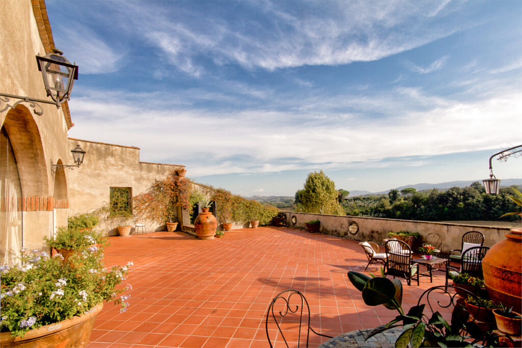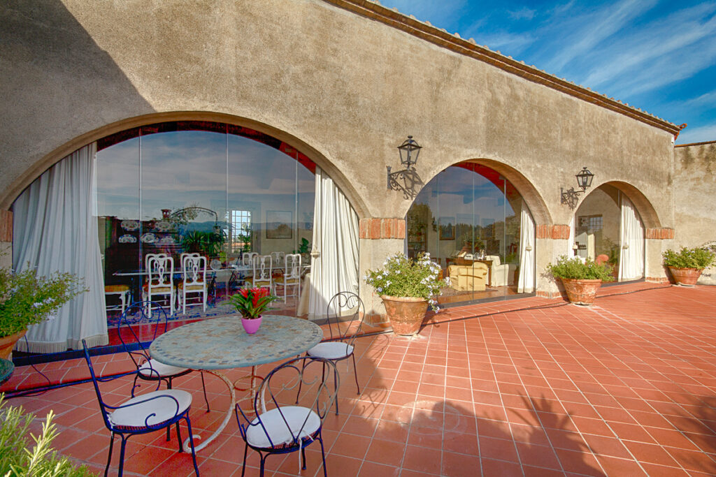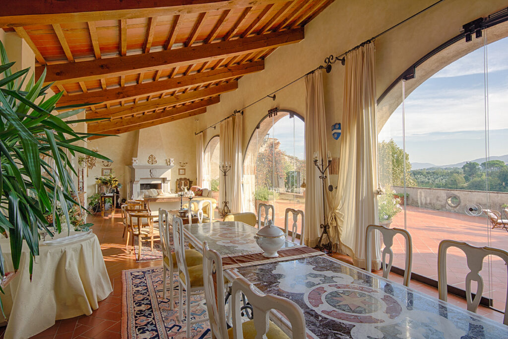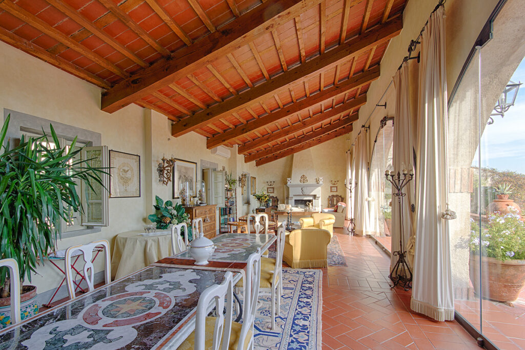 In the delightful village of Cevoli, just a few minutes from Pisa airport and the sea, is this wonderful property which has been recently renovated. The CASA DEGLI ARCHI is located on the first and top floor of a historic 18th century villa belonging to a prominent family from the area.