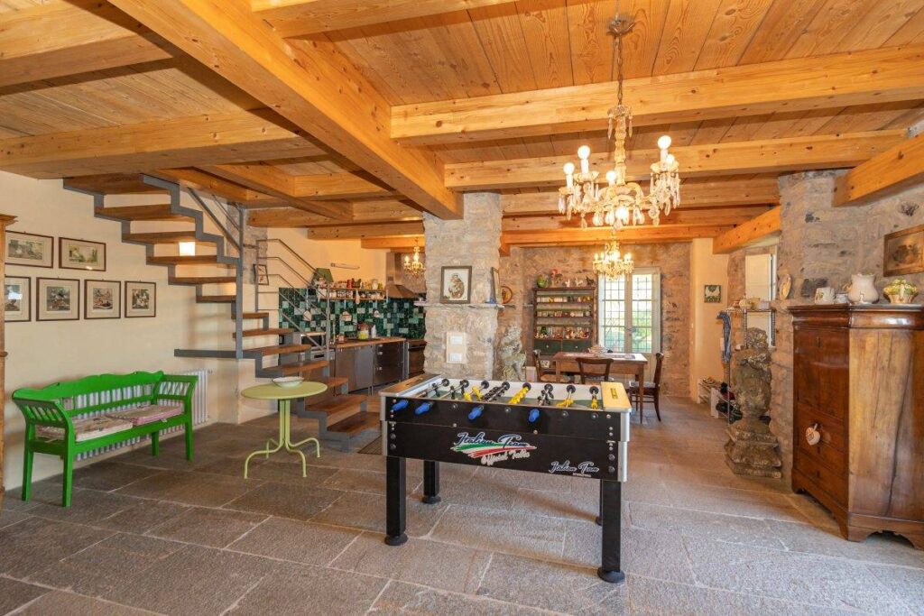 I pavimenti in parquet, gli elementi in pietra, le chiavi antiche, i materiali originali, gli alti soffitti in legno, l’uso sapiente del soppalco, le pareti in pietra perfetta, le porte antiche e i numerosi dettagli curati con attenzione conferiscono alla casa calore e autenticità e creano un fascino unico. La posizione strategica di questa villa è un altro dei suoi punti di forza. In poco tempo potrai immergerti nelle acque cristalline del Mar Ligure, perfette per prendere il sole. In alternativa, se sei un amante dello sci, potrai raggiungere facilmente le vicine piste da sci, rendendo questa villa un rifugio ideale per tutte le stagioni. Inoltre, potrai scoprire le bellezze del Basso Piemonte, rinomato per i suoi vini eccezionali e le sue sublimi esperienze culinarie.